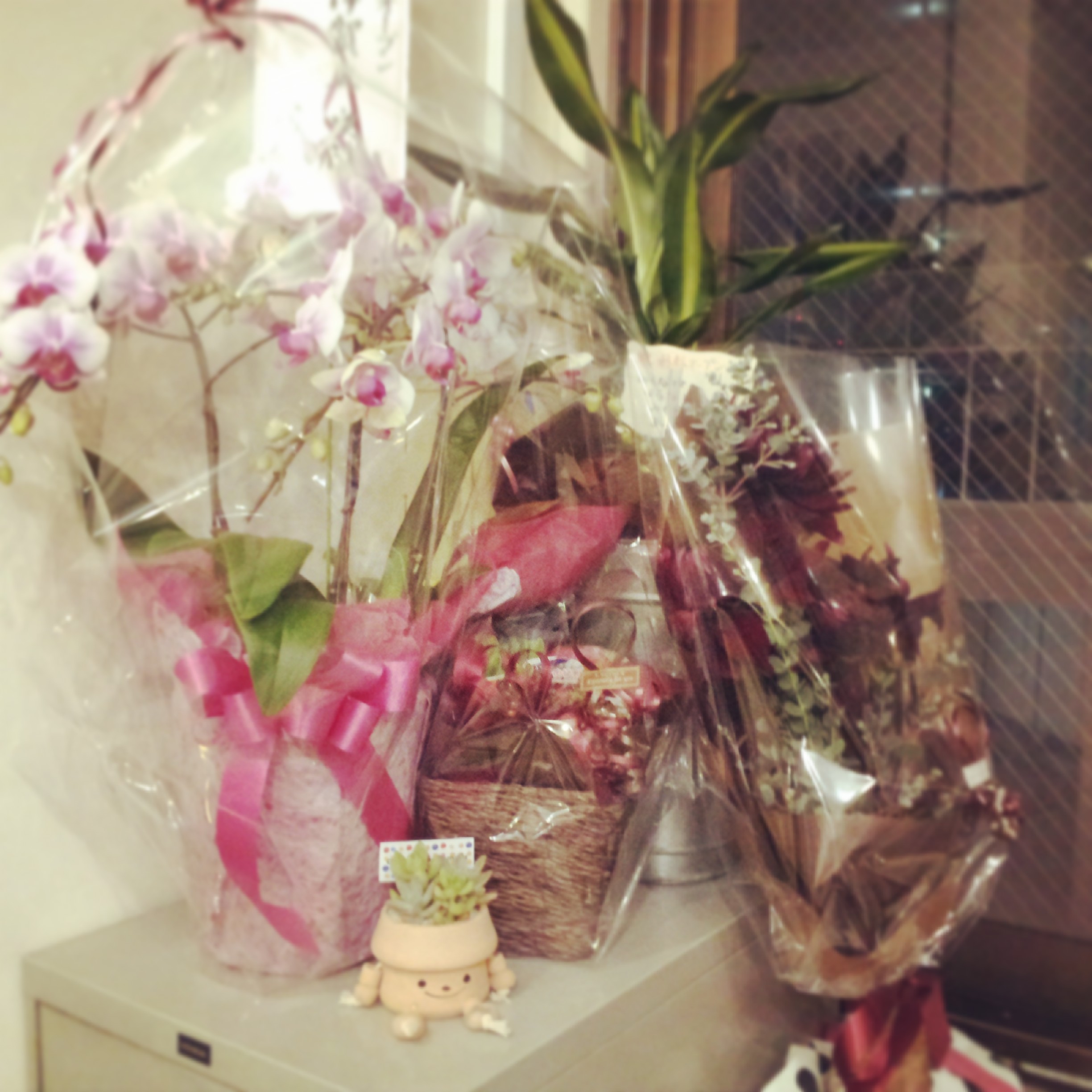 お花もたくさんいただき、大好きな多肉のプレゼント、そして、ちょうど雨だったので傘立てのプレゼント、ありがとうございます!!!