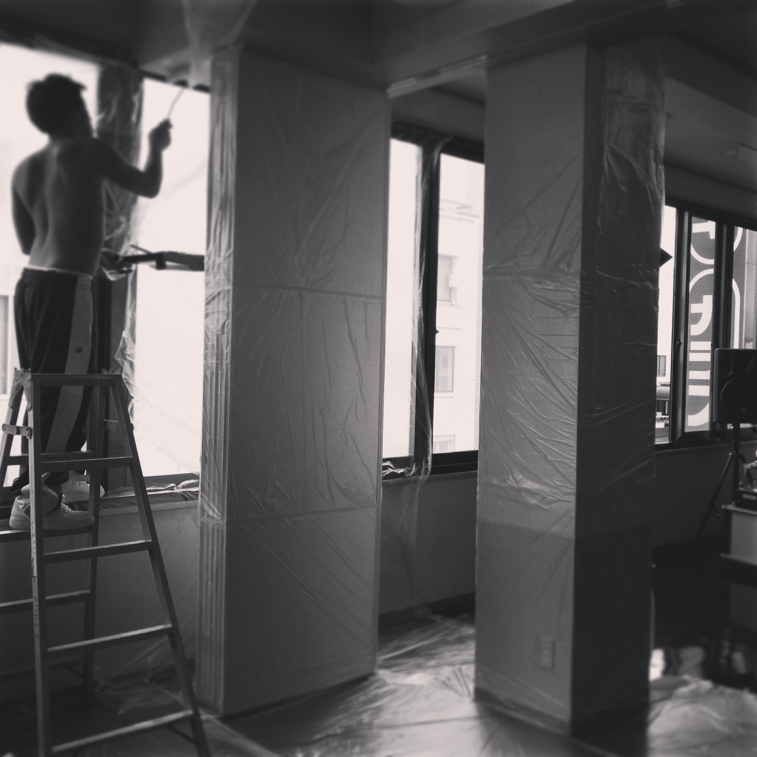 パテーションの裏側が残っていたので、ここは月曜、一人でせっせと塗りました。