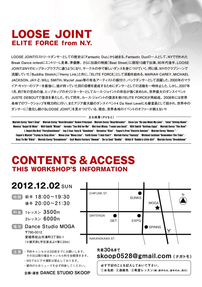2日にはHIPHOPのオリジネーター Loose Joint のワークショップ!!