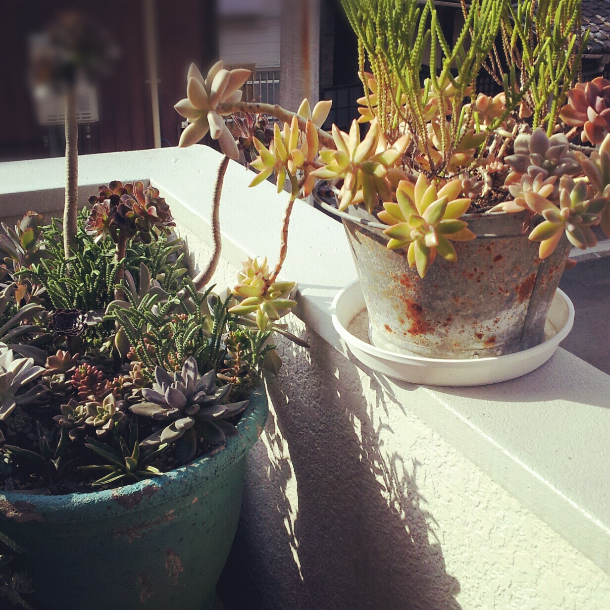 日中は暖かいのですが、朝晩めっきり寒くなって、多肉が大分色づいてきました。